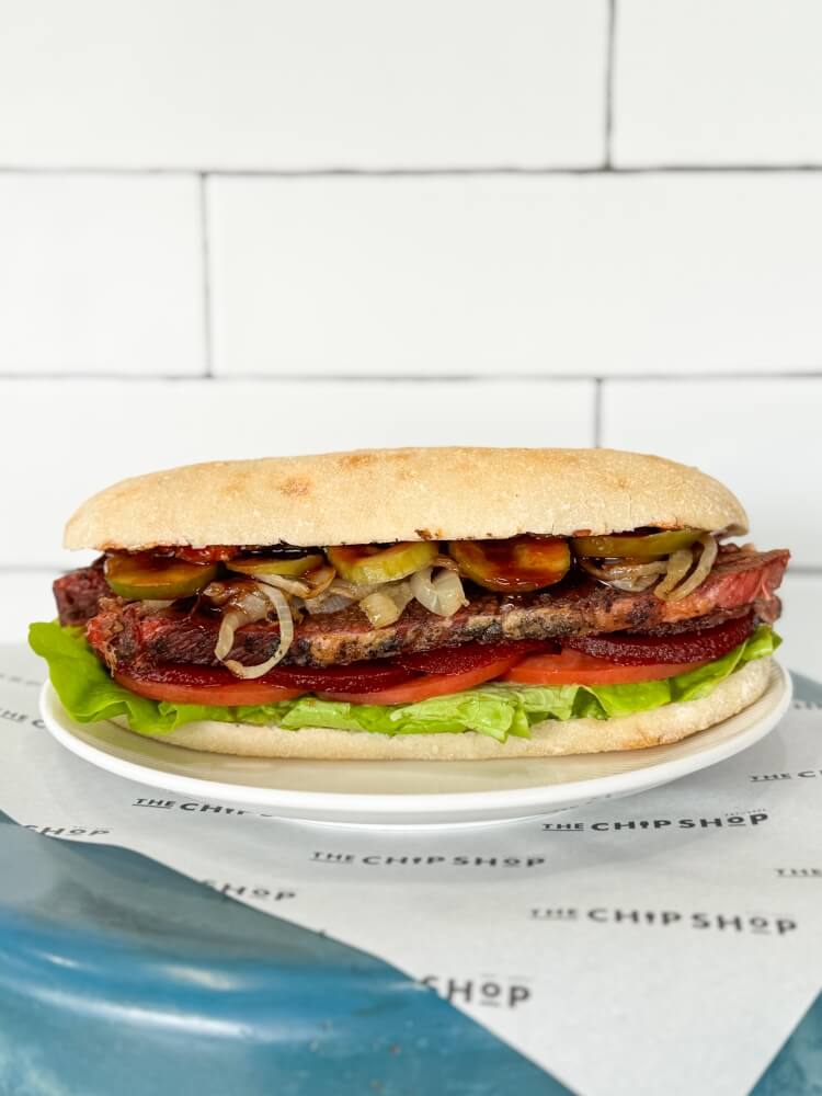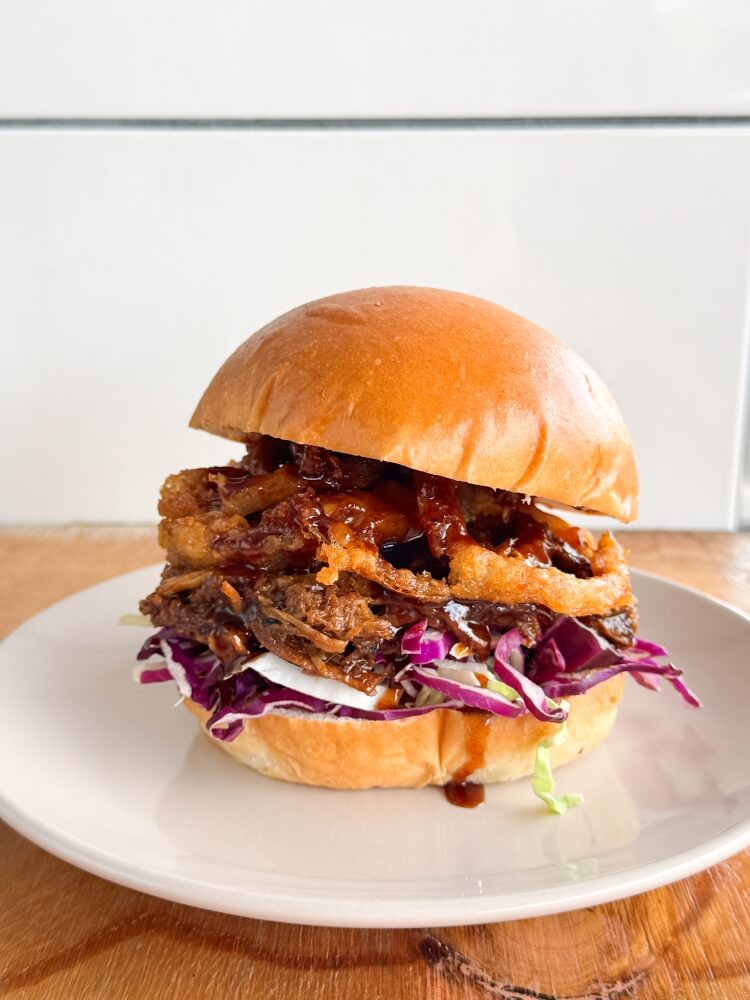12 hour smoked brisket w/ lettuce, tomato, beetroot, fried onion, pickles and housemade bbq sauce.