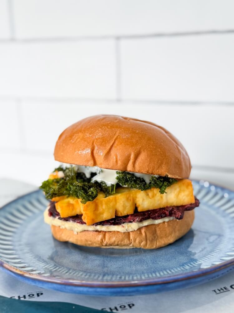 Housemade beetroot pattie, halloumi, hommus , kale chips w/ ranch.