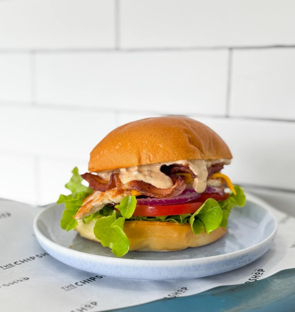Grilled chicken breast, bacon, cheese, lettuce, tomato, red onion and zesty house made harissa mayo.